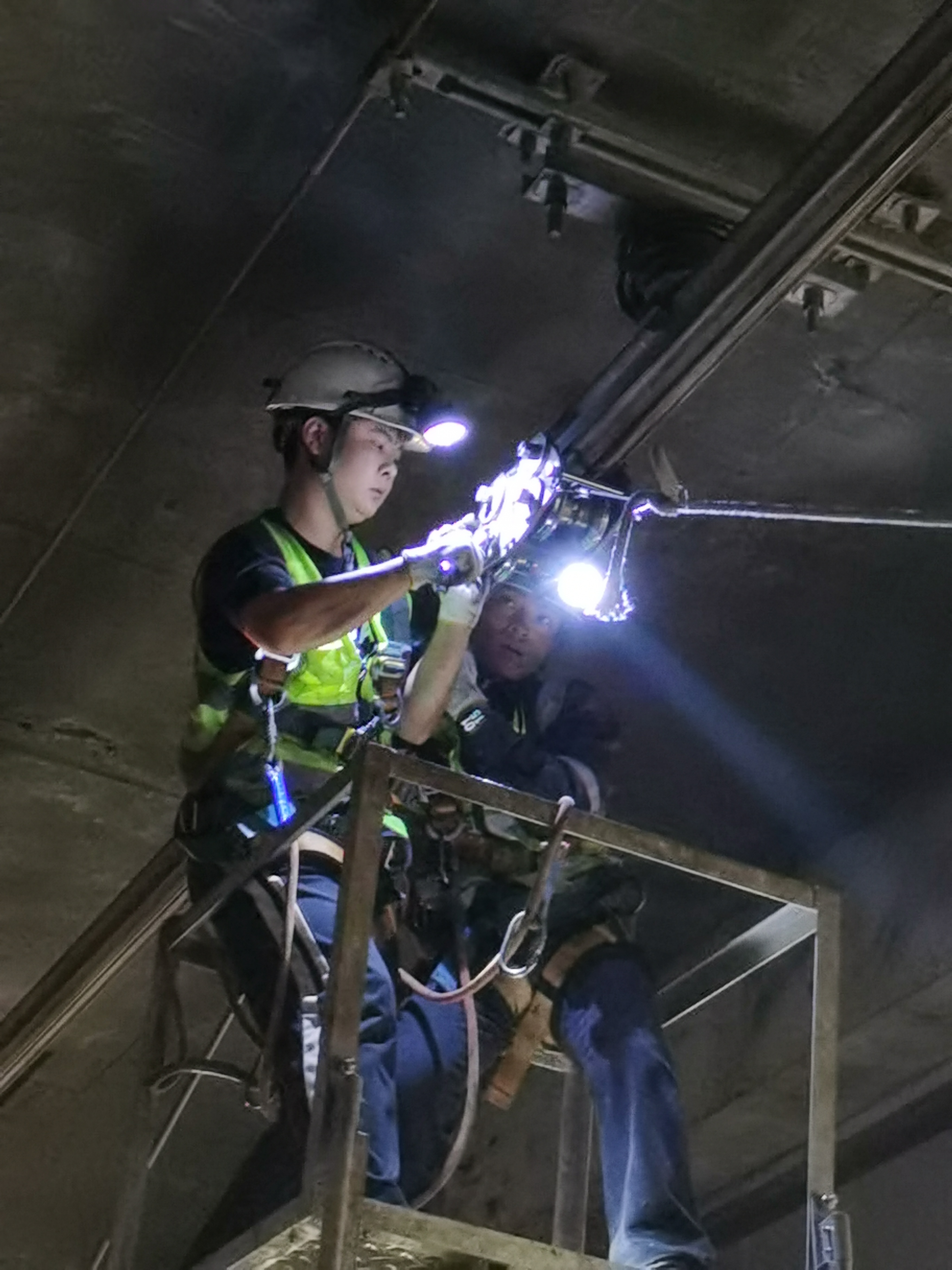 作业现场,原本漆黑寂静的隧道内灯火通明,对讲机的指令声、作业人员的沟通声、机器的轰鸣声此起彼伏,现场节奏紧凑、井然有序。“各组注意!严格落实防护措施,注意避让工程车并保持安全距离。”一遍遍重复的安全提醒从对讲机内传来,让现场人员时刻保持安全弦不大意,确保人身、设备双安全。