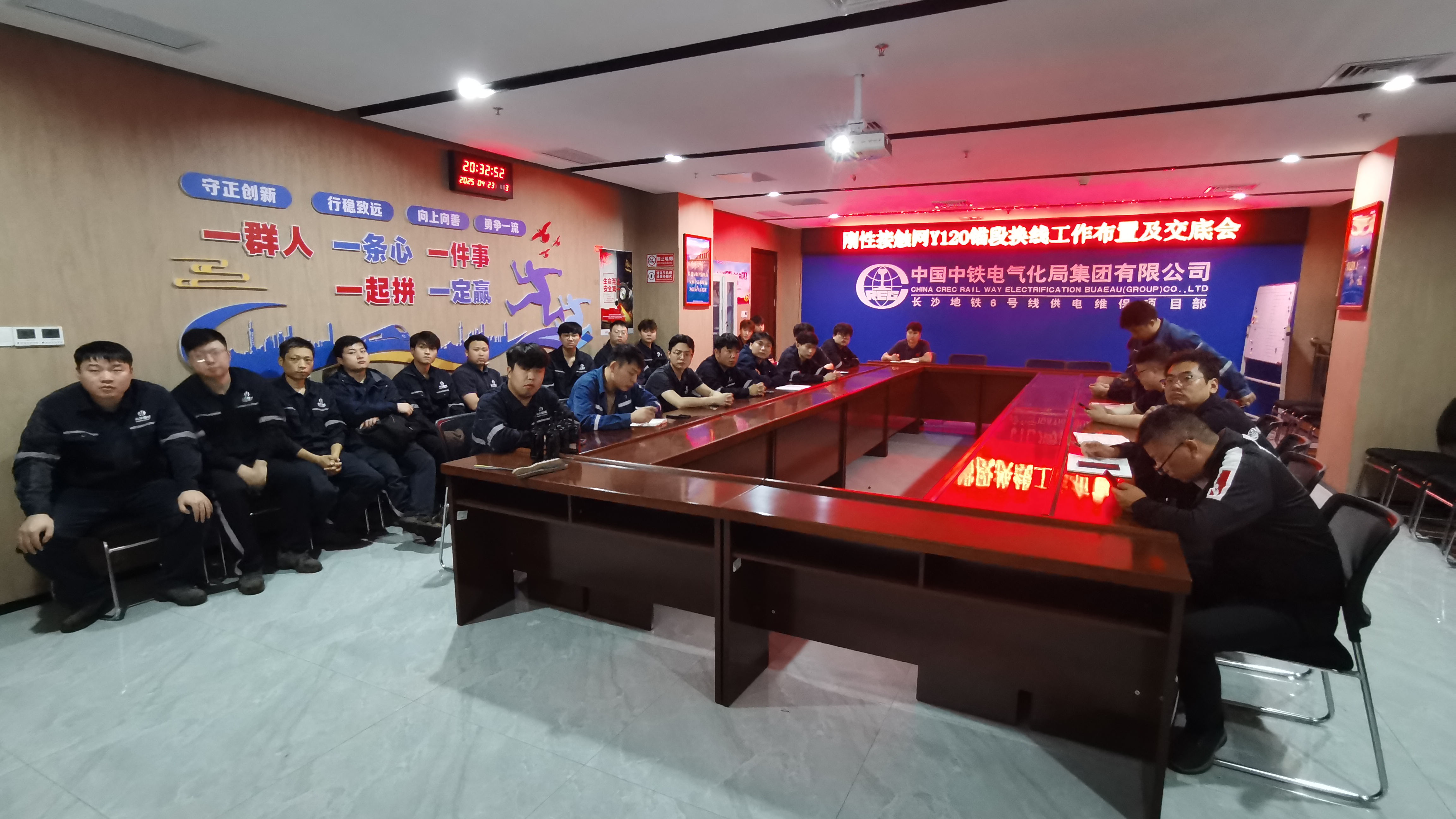 (国铁路网、交通运输新技术网通讯员 张运飞)“线路已封锁,全线接触网已停电,可视化接地柜刀闸已合闸,各小组根据预定方案开始作业。”随着命令下达,4月24日凌晨1点,中铁电化局集团长沙地铁6号线供电维保项目部接触网专业在芙蓉区政府站上行Y120锚段,开始了紧张而有序的接触网整锚段换线作业。项目经理李振玉及行车分部相关人员到一线进行现场盯控。