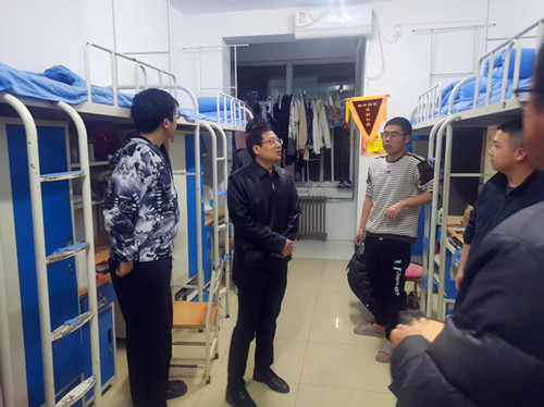 当晚,刘明学一行首先来到高新校区学生公寓,仔细查看宿舍消防设施及环境卫生,并与在校学生亲切交谈,详细询问大家的学习生活情况,叮嘱同学们增强安全意识,遵守管理规定,共同营造温馨和谐的住宿环境。