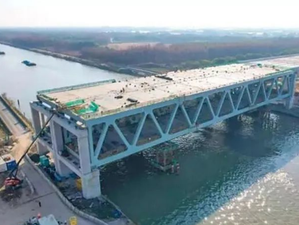 上海S3公路横跨大治河、惠新港的两座双层钢桁架桥成功完成架设