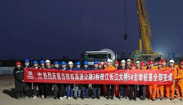 湖北当枝松高速公路项目枝江长江大桥主墩桩基施工全面完成
