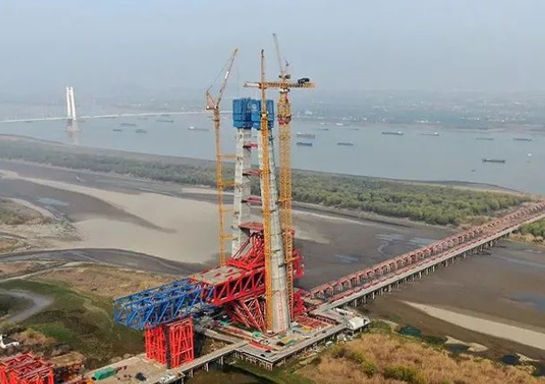 马鞍山长江公铁大桥主塔高度突破200米