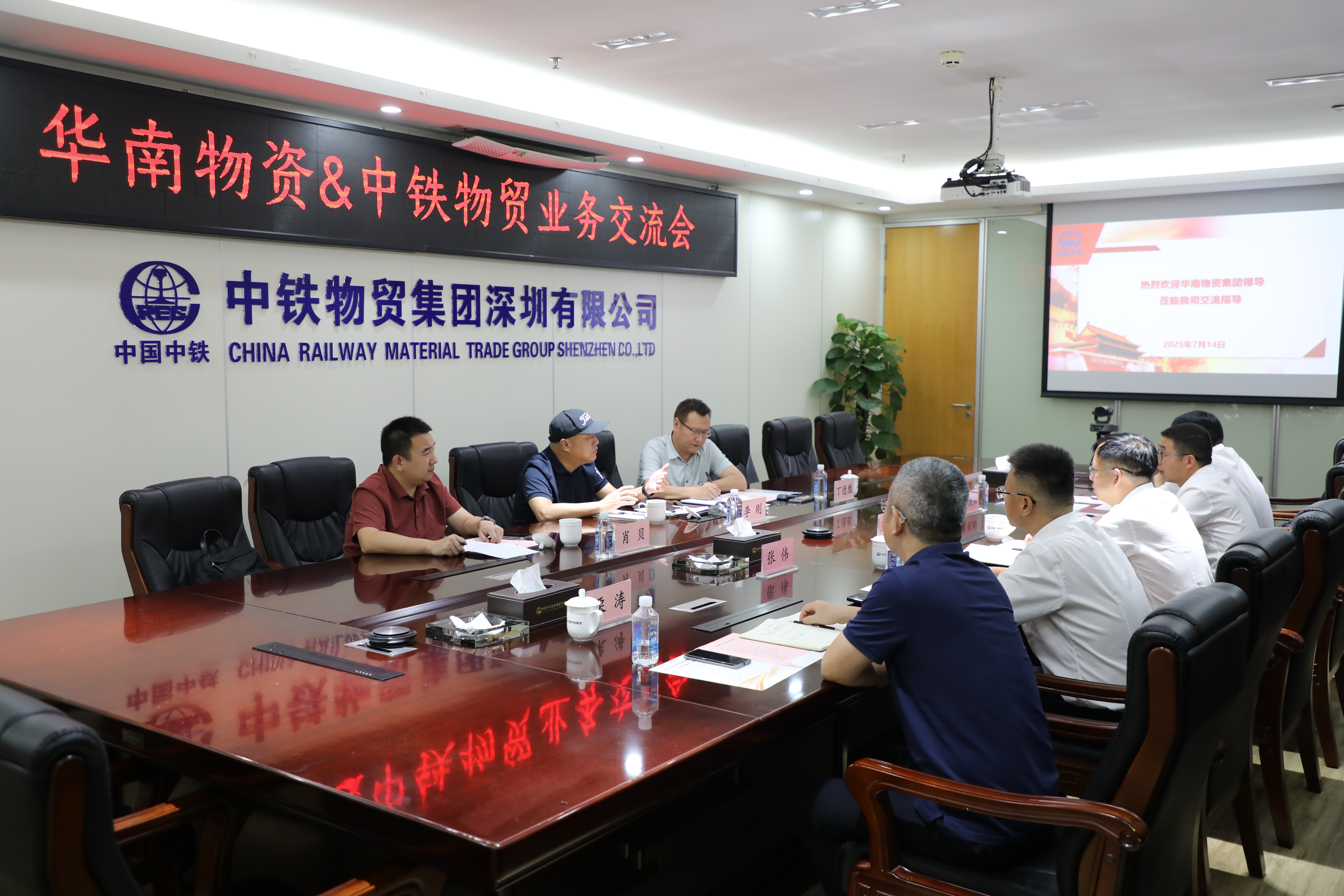 7月14日,华南物资集团有限公司总裁李刚一行到访中铁物贸深圳公司开展座谈交流。2025-07-14 发布人:刘小锋 -