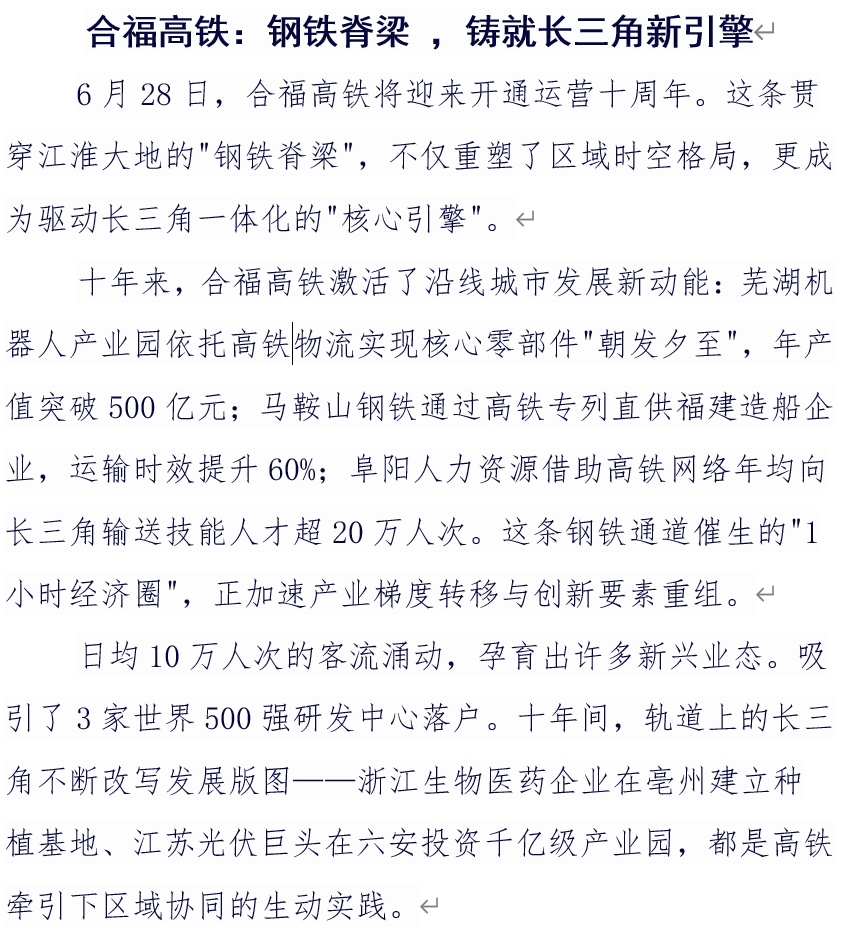 6月28日,合福高铁将迎来开通运营十周年。这条贯穿江淮大地的"钢铁脊梁",不仅重塑了区域时空格局,更成为驱动长三角一体化的"核心引擎"。2025-06-30 发布人:边琪埕