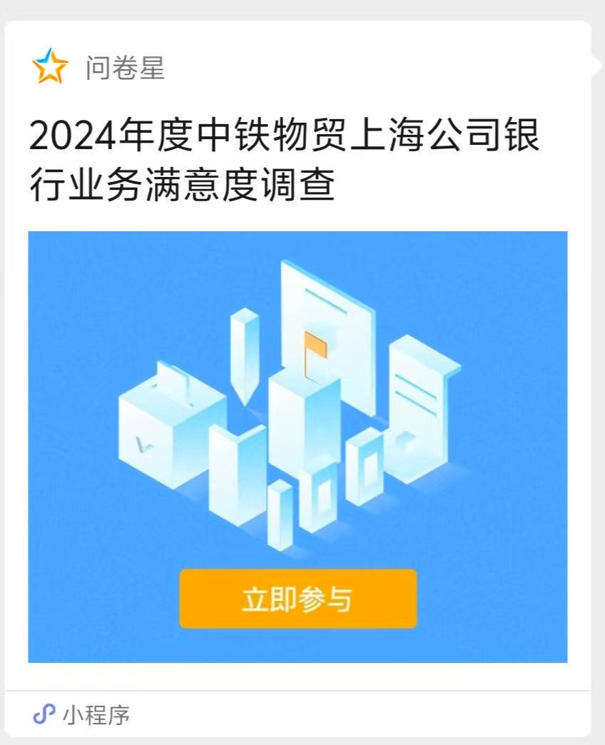 近日,中铁物贸上海公司财务部组织开展了2024年度银行业务满意度问卷调查。2025-03-24 发布人:孔平平 -