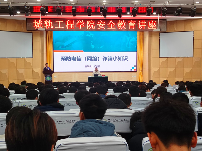 3月5日晚,陕西铁路工程职业技术学院后勤安保处干事乔梁应邀在高新校区博爱厅为城轨学院500余名学生作了一场 “预防电信(网络)诈骗小知识”的专题讲座。2025-03-06 发布人:李鸿彬 -