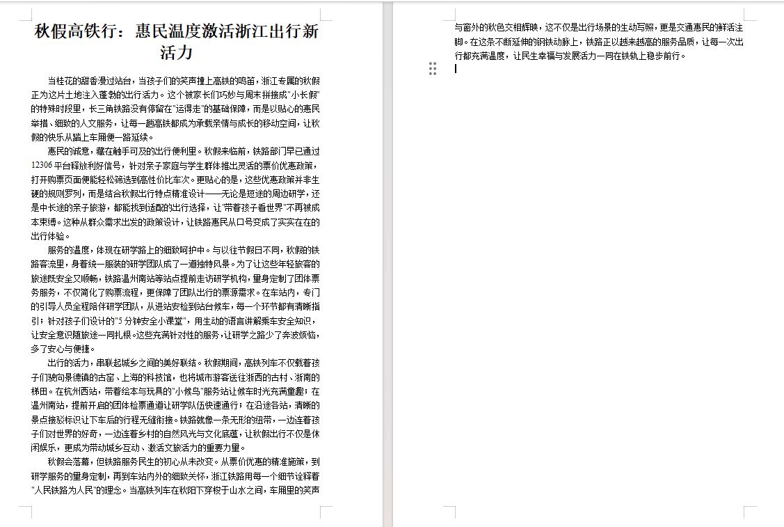 秋假高铁行:惠民温度激活浙江出行新活力
