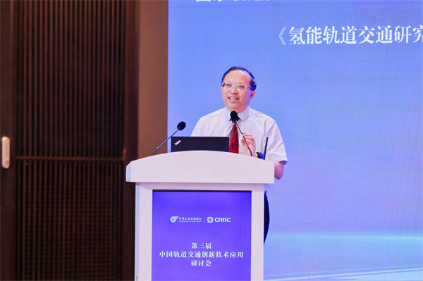 西南交通大学氢能及储能技术研究院院长陈维荣教授受钱清泉教授委托,做俩人共同执笔的《氢能轨道交通研究现状、机遇与挑战》报告交流。随后,国家高速列车青岛技术创新中心梁建英主任,广州地铁集团有限公司党委委员、副总经理蔡昌俊,中车长客股份公司副总经理、总工程师汪忠海,北京唐智科技发展有限公司副总经理黄贵发分别分享《数智化在轨道交通装备领域的应用与发展趋势》《城市轨道交通行车关键设备设施主动运维系统研究及工程应用》《轨道交通创新技术应用现状与展望》《广义共振故障诊断技术在轨道交通安全保障与智能运维中的应用》报告交流。
