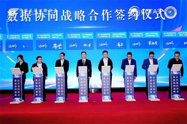 开幕式上,四川港投数智物贸产业发展有限公司与四川交子金融科技有限公司、成都数据集团股份有限公司、四川博览投资有限公司、四川数据集团有限公司、中国移动通信集团四川有限公司、成都交子数字金融投资集团有限公司、绵阳科技城新区投资控股(集团)有限责任公司隆重举行交通物流数据协同合作战略签约仪式。双方将以此为契机,建立全面战略合作关系,旨在打破数据壁垒,推动跨领域数据资源共享与高效协同。此次合作将深度融合先进信息技术与交通物流产业,共同构建智慧、绿色、安全、高效的现代交通物流数据体系,为提升产业链供应链韧性与安全水平、服务经济社会高质量发展注入新动能。