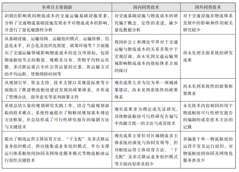 (1)形成了“基于成本分析下的物流枢纽功能优化技术冶。识别出影响我国物流成本的交通运输要素特征,基于量化敏感性分析结论构建了交通运输领域影响物流成本的指标体系,提出了交通运输降本增效的中长期政策框架和措施建议,对物流枢纽的功能优化提出了相关指引和要求。