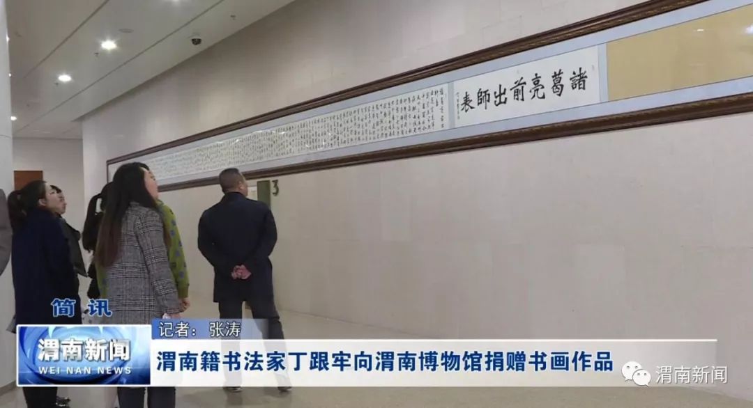 2018-11-08上午,中国国际书画院终身副院长、国家一级书法家丁跟牢先生向渭南博物馆捐赠了《出师表》书法长卷及12幅其他书法作品和部分图书,其中《出师表》卷长20多米,笔法苍劲有力,艺术价值极高。丁跟牢先生多年来潜心书法艺术,多幅作品被人民大会堂和毛主席纪念堂收藏。