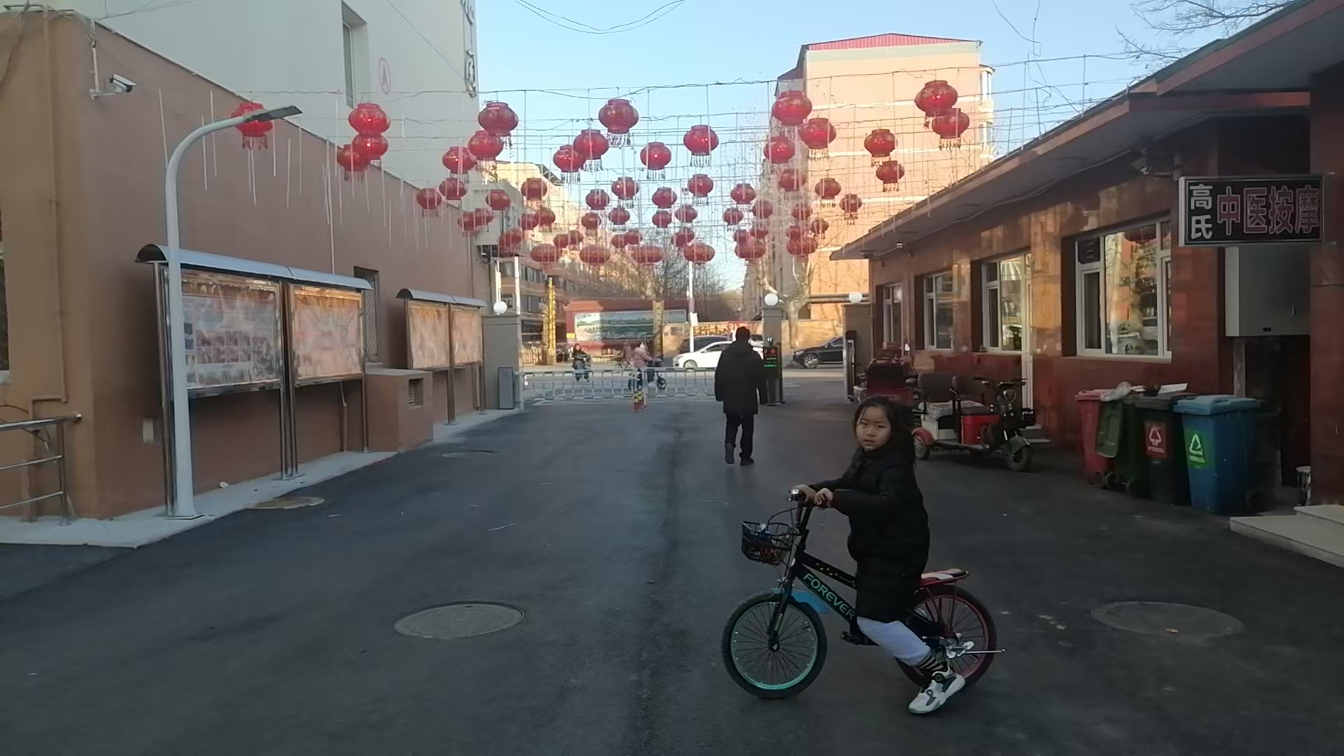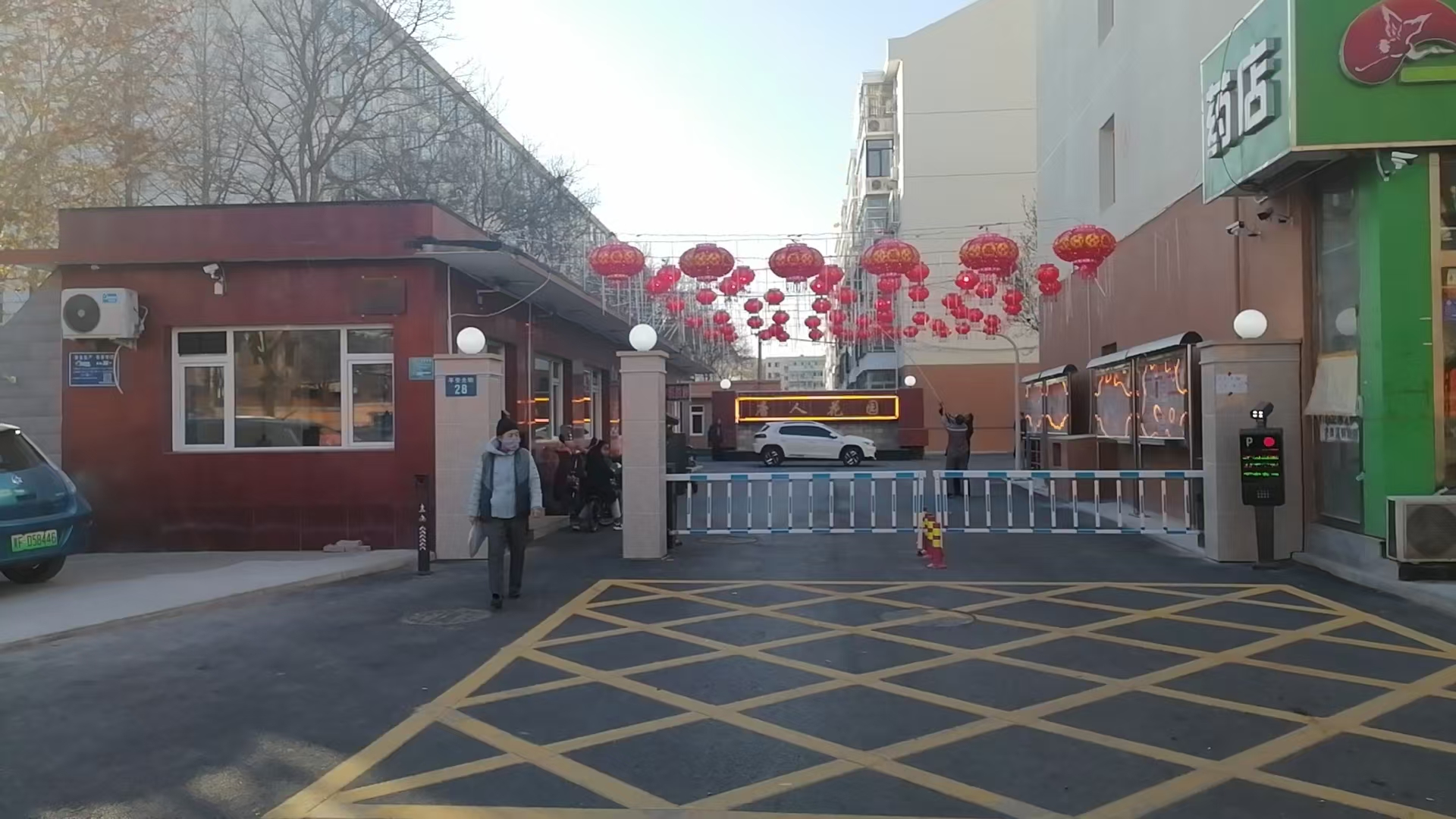 小区大门口春节装饰红灯笼增添节日氛围