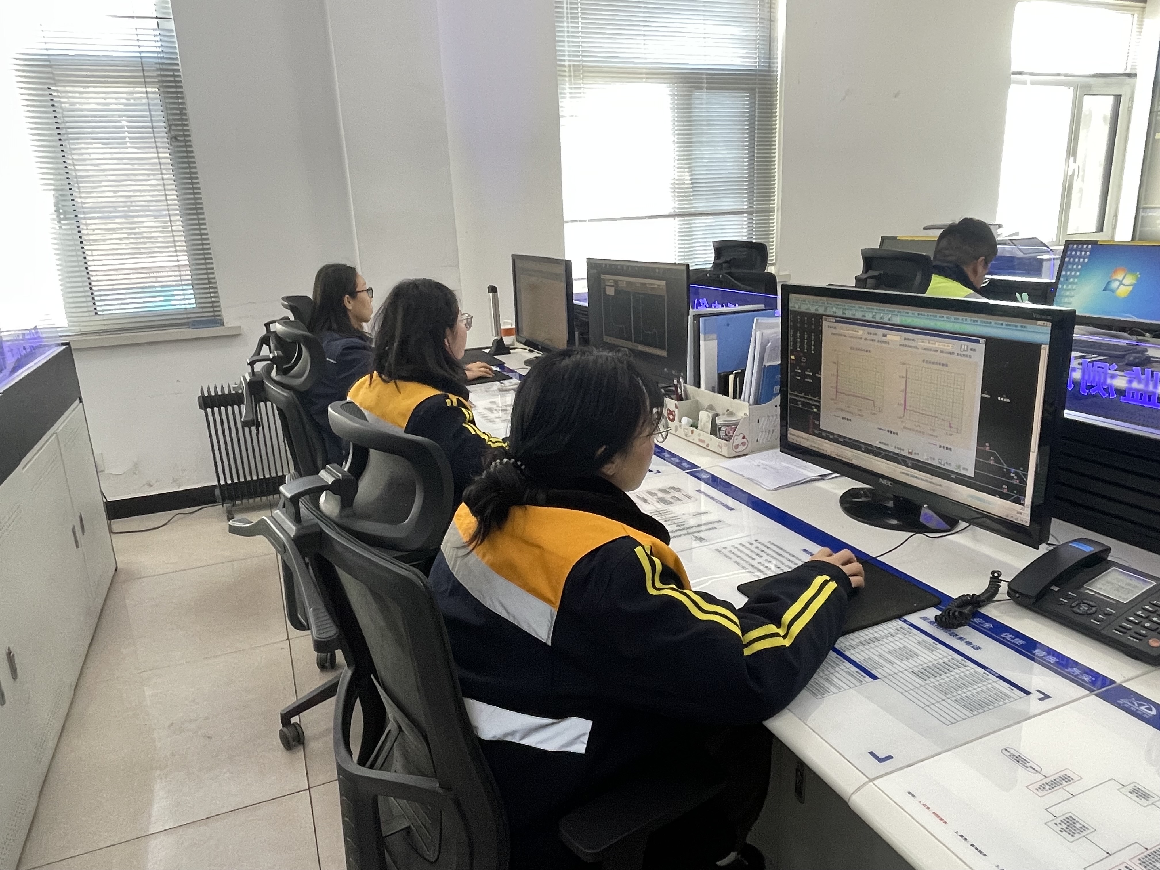三场施工同时展开,党内品牌里的女将——黄陵检查整治工区杜蕴佳、胡阿庆、杜柯颖也不甘示弱,在车间指挥中心她们对作业过程中各项电气特性指标进行全面调看,确保施工过程中异常情况得到有效处置,为施工任务顺利完成提供可靠保障。“黄陵南站6#道岔曲线有所好转”,“黄陵站室内电码化电流较之前有所升高”,杜柯颖一手快速滑动鼠标点击设备采集曲线,一手拿着对讲机反馈着设备实时信息,有了这些宝贵的实况信息,现场施工组人员就能够第一时间掌握设备实时状态,确保信号设备不留隐患。大家团结一心,合作无间,每个人发挥着自己的长处,在相互协作中高效完成一次次施工任务,完美诠释了“乌金平安盾”的品牌理念。