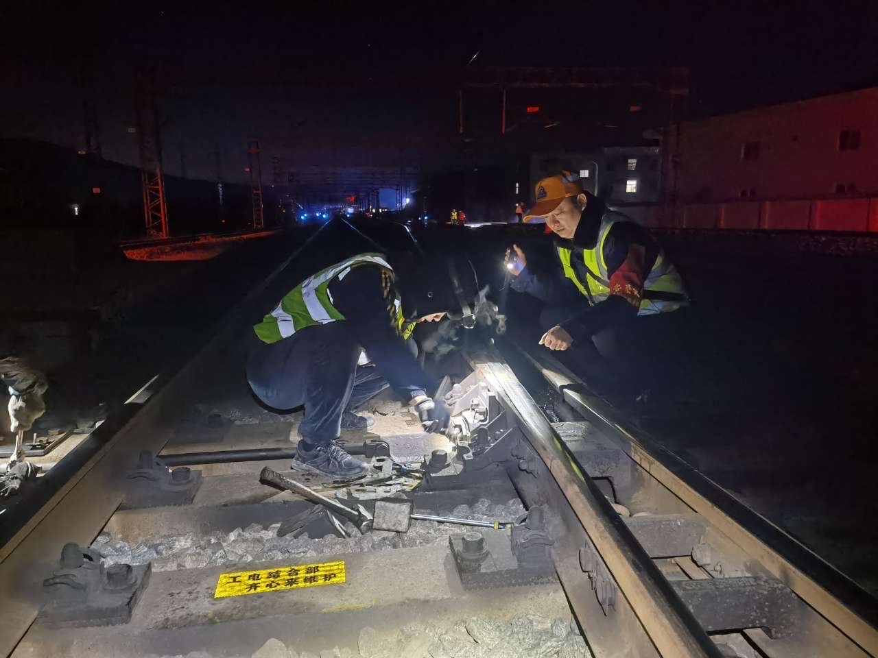 “给点啦,大家可以开始作业!” 黄陵南信号工区室外防护员白旭东刚说完,黄陵检查整治工区工长陕强急速小跑到黄陵南站6#道岔处,开箱盒、开锁、松螺丝一气呵成,只见他手拿榔头轻敲勾头,查看压力是否合适;忽而又蹲下身,查看缺口变化情况,就这样120分钟的天窗,他蹲下起来来来回回有50余次。这次施工他是主力队员,同时他也是一名党员,对于“乌金平安盾”党内品牌,他有着自己的见解:“我们克服了一个个道岔病害,相当于给设备穿上了一层层保护罩,给列车运输增加了一次次安全保险”。