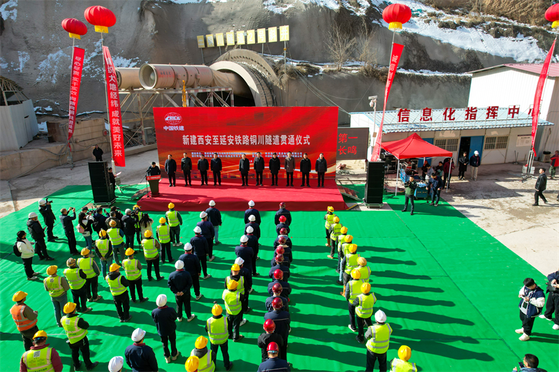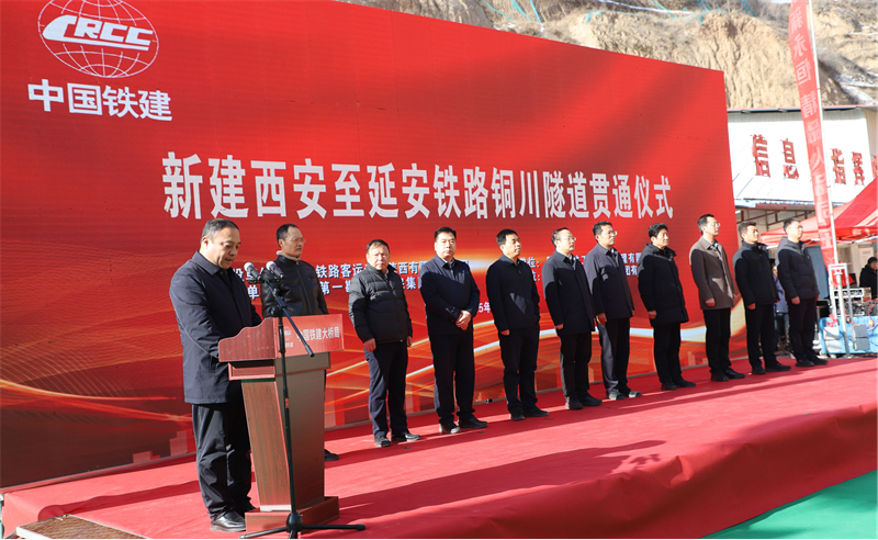 铜川隧道是西延高铁贯通的最后一条隧道,在隧道现场举行了隆重的贯通仪式,铜川市委常委副市长刘浩等市领导;西成公司副总经理宁和平等业主领导;铁一院西延指挥部、陕西国铁工程资咨公司、施工单位中国铁建大桥局西延高铁项目部参建干部员工,以及参建队白出席仪式,西延4标项目经理姚懿德致贺辞,宁和平致贺信,刘浩宣布隧道贯通。