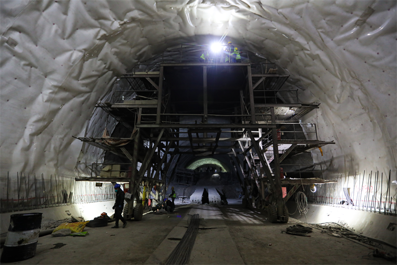 为确保施工顺利推进,项目部持续深化精品工程创建,不断深化科技创新,采取超前地质预报、围岩监控量测等方式,对隧道地质条件进行综合分析判断,积极优化支护参数,动态调整爆破参数,同时多举措提高隧道围岩自稳能力,加强对隧道洞内及地表监控量测,实时监测掌子面围岩状况,确保隧道施工安全推进。建设单位坚持以科技赋能施工生产,采用大机配套施工,配备了智能凿岩台车、智能湿喷台车、智能拱架台车、智能衬砌台车、数字化防水板台车和数字化仰拱栈桥成套智能装备,结合GIS+BIM技术,构建了高保真、全实时、不间断的同步施工场景,让工程建设施工进度、过程、风险、环境、人员、质量等多维度数据、视频信息在大屏端进行综合呈现,实现了施工的可视化和可追溯性。为保障项目建设安全有序推进,陕西国铁工程咨询管理有限公司认真做好监理履职,严格把控好方案审批、材料验收、过程安全质量控制、验工计价、资料签认等各环节,全力确保施工安全和工程质量。