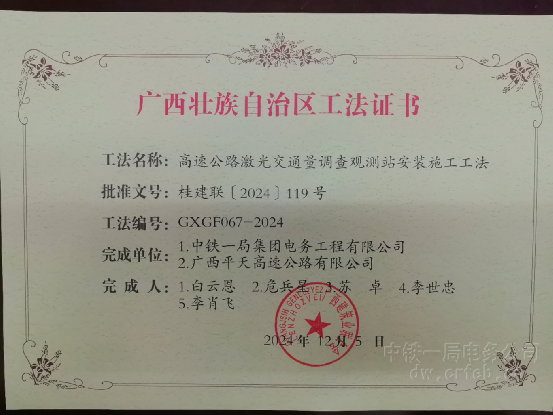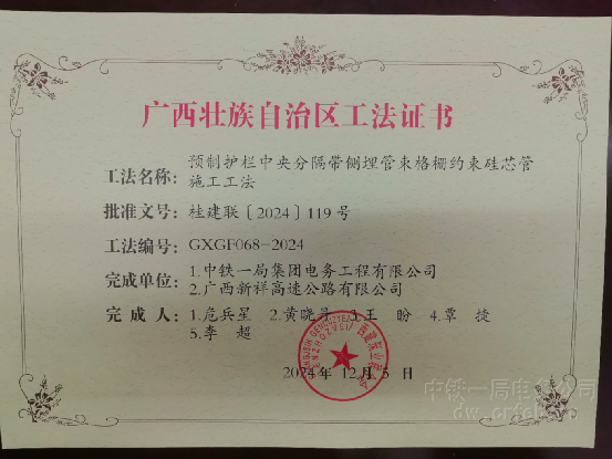 中铁一局集团电务工程有限公司再获两项广西壮族自治区工程建设工法