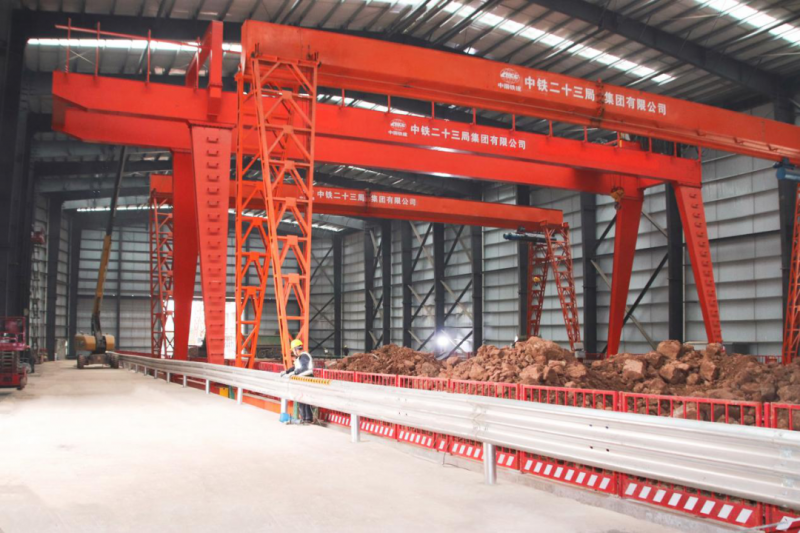 近日,重庆地铁24号线一期瓦子坝站钢结构大棚主体结构顺利完成。该大棚长182米、宽36.5米、高18米,内设基坑开挖区、物料运输主路、小型材料运输辅路及龙门吊2台,排风、喷淋、照明、临电系统一应俱全。2023-04-10 -