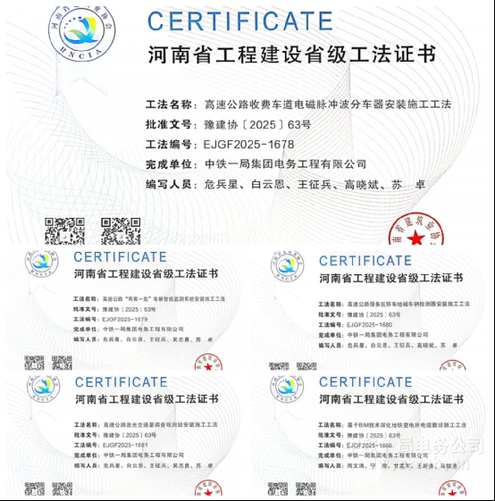 中铁一局集团电务工程有限公司五项工法获省级认证 引领行业技术创新